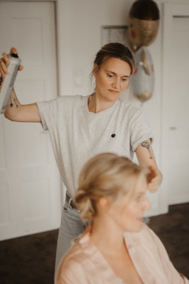 Auf Wunsch bleibe ich auch gern für ein Touch-up oder das Styling deiner Liebsten vor Ort.